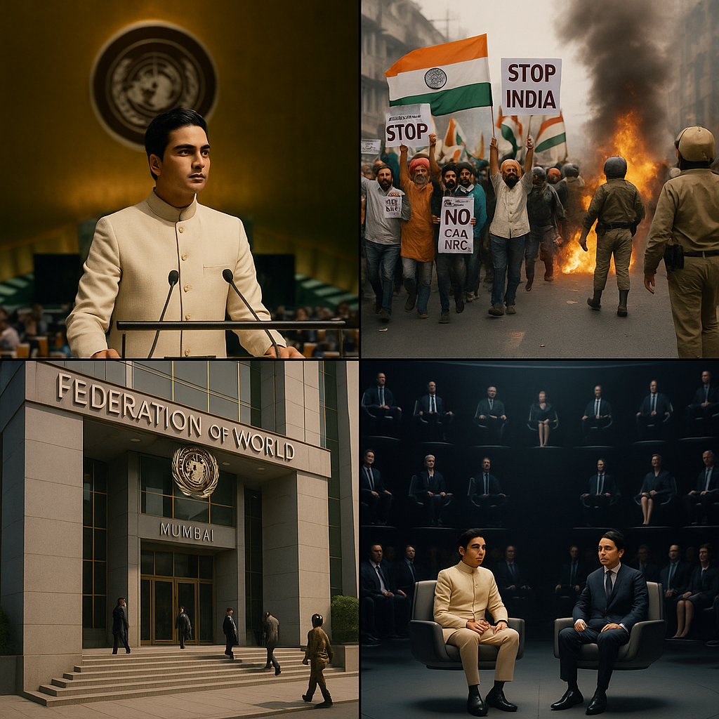Il 12 febbraio del 2058 Pitambar Mukesh, primo ministro Indiano, si stava recando come di consueto al palazzo del Governo a Nuova Delhi. Camminando, pensava al percorso fatto per la nascita della Federazione Mondiale e proiettava la sua mente alle insidie e agli ostacoli da aggirare nell’immediato futuro. Era un sogno che si stava realizzando, forse le generazioni future lo avrebbero ricordato come il padre della Federazione. Un accenno di sorriso soddisfatto si disegnava sul suo viso. I suoni della città, caotica come sempre, il peso della sua valigetta sulla mano destra e l’aria tiepida con i soliti odori delle strade li percepiva in modo più distinto e cosciente del solito. Gli sembrava già di essere al tempo della Festa dei Colori.